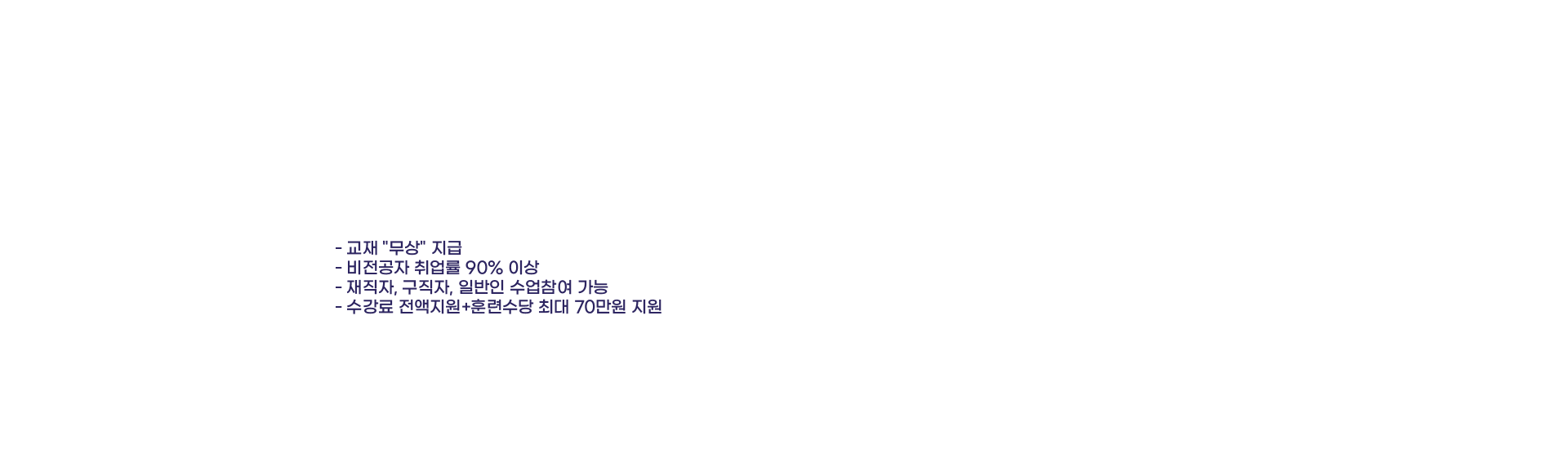 성현기 취업생비전공자이다보니 커리큘럼을 가장 중요하게 생각하고 학원을 선택했어요. 매일 수업 녹화영상을 업로드 해주셔서 복습하며 공부를 했고요. 학원에 모든 시스템이 갖쳐줘 있기 때문에 본인이 얼마나 하느냐에 따라 취업에 성공할 수 있다 고 생각해요. -